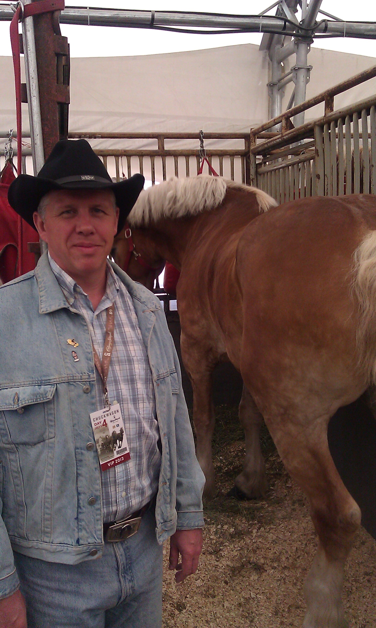 We had a really good start for our first ever Stampede experience – a friend of ours, who’s company is sponsoring one of the chuckwagon teams, invited us backstage with VIP passes. Chuckwagon racing is probably not very well-known outside Alberta. The story we were told about the historic roots is from the times when cowboys were actually moving herds of cattle from one location to other. The cook had to beat the herders and make dinner before the cowboys arrived, so he had to race faster than the herd with his wagon full of food and pots to make it to the next location. Now there are 4 teams racing – each wagon has 4 horses and a separate racer on horse who has to throw the keg on the wagon when the wagons start racing and jump on the horse. If they don’t make it before the Half Mile of Hell starts, then the team loses points that are added on to the finish time. The race lasts only half a mile, therefore the name of the course and the association of the sports. We went to the barns to see the horses and had a chance to talk to the drivers of the Maverick team. All horses are thoroughbred and they are rescued from becoming a part of somebody’s meatball after their racing career is over at the individual races. The horses are beautiful and somewhat unpredictable – one of the drivers of the team, had been kicked by the horse in the knee that resulted him having to wear a brace and quit the racing already on the second day.